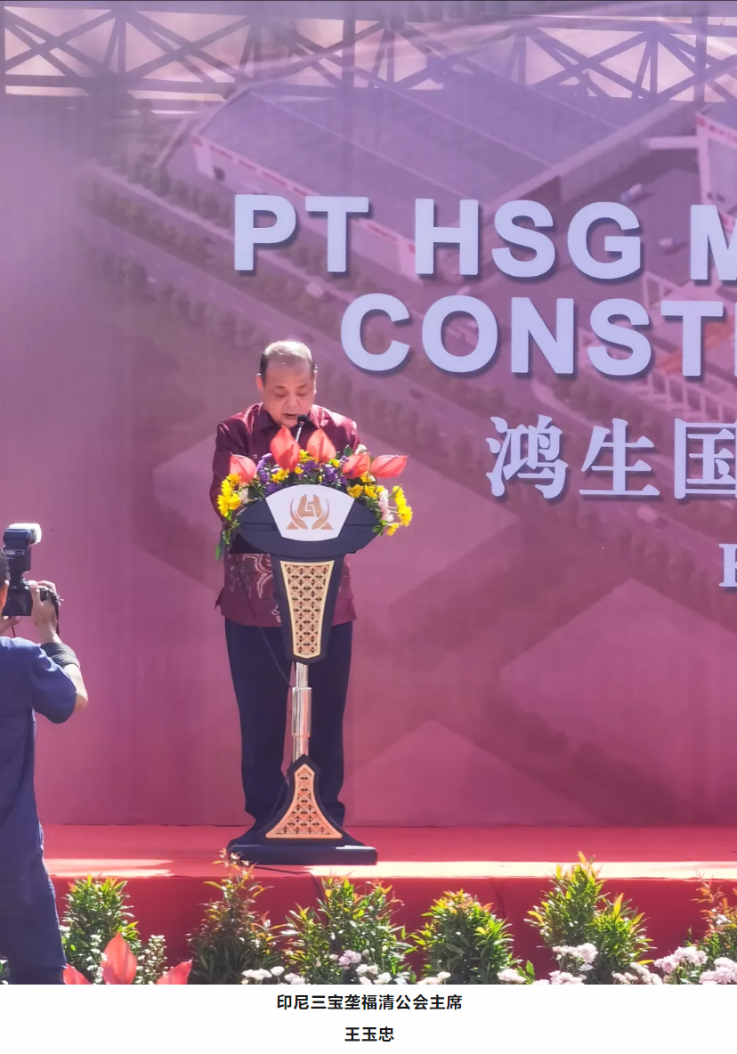 印尼三宝垄福清公会主席王玉忠代表商会致辞,深情表示“鸿生股份深耕建筑材料领域数十载,以卓越品质与创新技术铸就了行业标杆的辉煌成就。我们期待,印尼鸿生国际以肯达尔工业园区为起点,将中国建材领域的先进技术、绿色理念与印尼本土需求深度融合,打造东南亚一流的绿色建材生产基地;我们更期待,鸿生股份以此为契机,在印尼全境布局区域公司,形成覆盖东盟的供应链网络,成为中印尼产能合作的典范企业!”