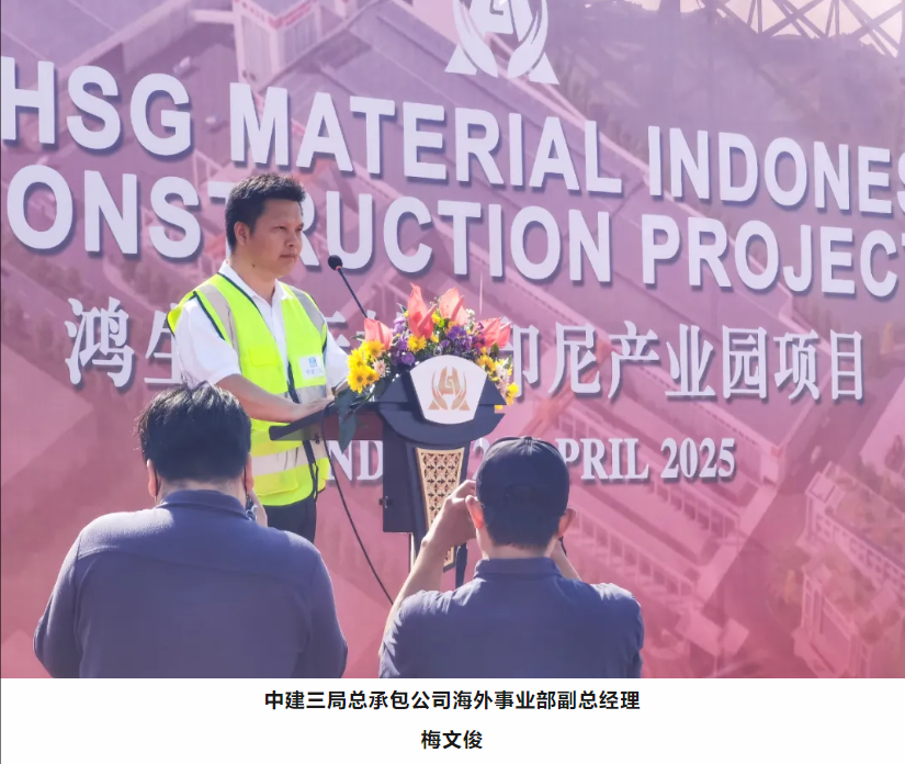 中建三局总承包公司海外事业部副总经理梅文俊出席仪式并致辞,他对印尼鸿生国际项目的顺利开工表示热烈祝贺。“中建三局承接鸿生印尼产业园项目,是我们与鸿生股份又一次的双向奔赴,是国内合作向国际合作的延伸。我们将秉持‘敢为天下先,永远争第一’的企业精神,充分发挥中建三局在技术、管理和资源整合方面的优势,项目必将如期高质量建成投产,成为中印尼合作的又一典范。”
